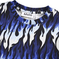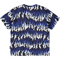 Blå og hvid flamme løs t-shirt i blødt økologisk bomuld med korte ærmer og ribkant i halsen.