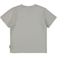 Kakifarvet t-shirt i blødt økologisk bomuld med korte ærmer og ribkant i halsen. T-shirten har en løs pasform med et nærbillede af en løve i gyldne farver.