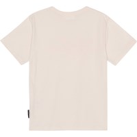Lys ufarvet t-shirt i økologisk bomuld. På printet er der en stor palme i orange, gul og grøn, og ser du godt efter, kan du måske finde et skjult budskab om 'More Love'. T-shirten har en rund halsudskæring, ribkant i halsen og en løs pasform.