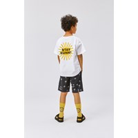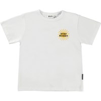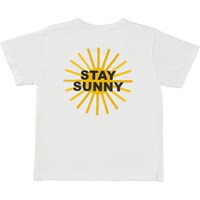 Riley er en hvid t-shirt i økologisk bomuld med en lille sol på brystet, og en stor sol midt på ryggen.