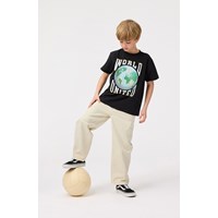 Sort t-shirt i blødt økologisk bomuld med korte ærmer og ribkant i halsen. T-shirten har en løs pasform samt et frontprint af en lyseblå fodbold med verdenskort på og teksten ´World United´.