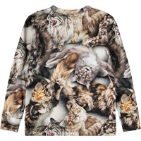 Langærmet bluse i blødt økologisk bomuld med ribkant i hals og ærmer. Blusen har en almindelig pasform med et print af katte i gyldenbrune farver.