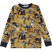 Rill er en brun langærmet bluse med print af forskellige dyr på månen. Blusen har mørkeblå ribkant ved hals og ærmeafslutning.