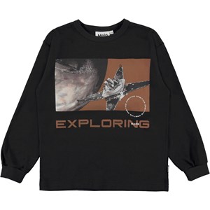 Rin er en sort langærmet bluse med print af satelit, som kredser rundt om Mars og teksten 'Exploring'.