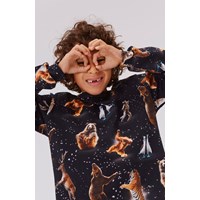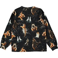 Rin er en sort langærmet bluse med print af forskellige dyr, som er i fest stemning. Både bjørnen, pingvinerne, tigeren, aben og mange andre dyr danser løs.
