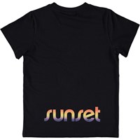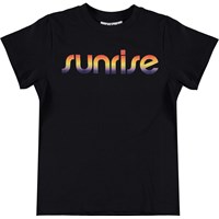 Road er en sort t-shirt med 'Sunrise' trykt over brystet i changerende farver.