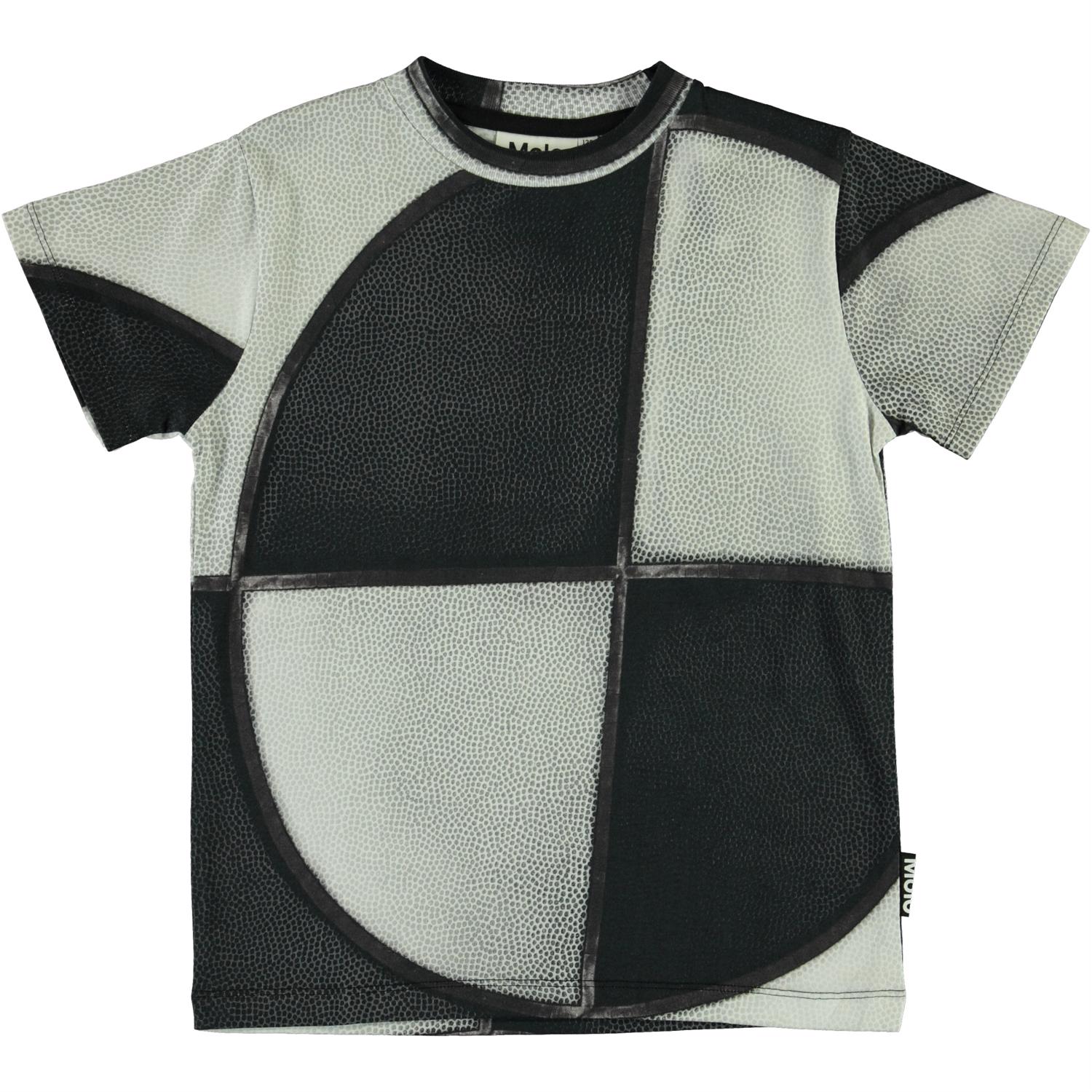 Road er en sort og hvid t-shirt med print af basketboldens strukturer.