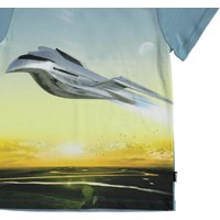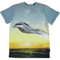 Road er en lyseblå t-shirt med print af fremtidens fly på fronten.