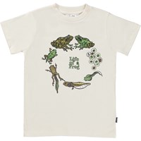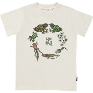 Road er en råhvid t-shirt med print af frøens liv, fra den er et lille æg til den er en voksen frø.
