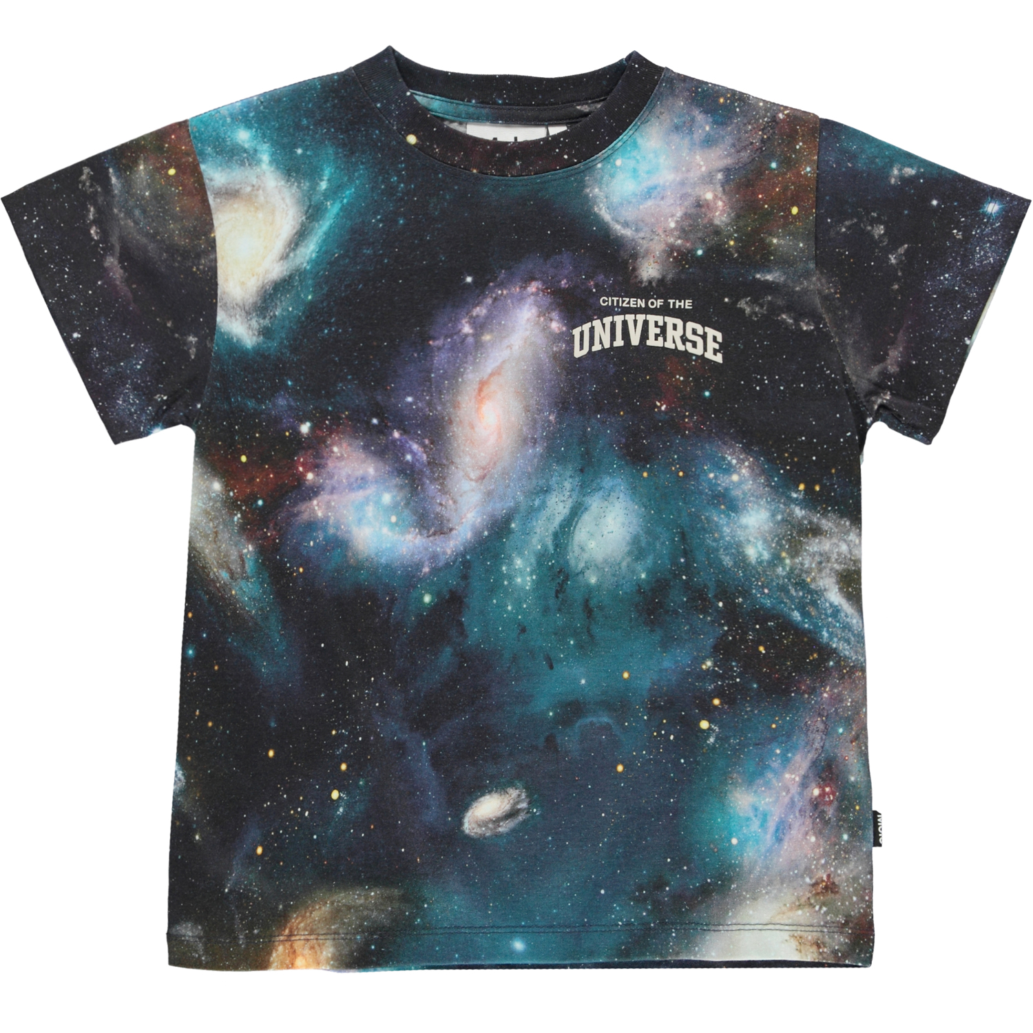 Road er en t-shirt med flot farverigt print af galaksen og printet 'citizen of the universe' på brystet.