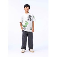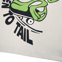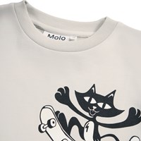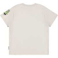 Beige t-shirt i blødt økologisk bomuld med korte ærmer og ribkant i halsen. T-shirten har en oversize pasform med print af en kat, alien og en hjerne på skateboard.