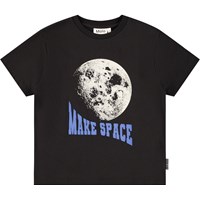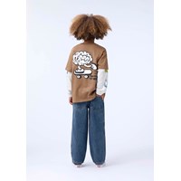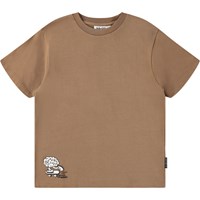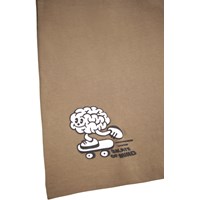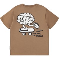Brun t-shirt i blødt økologisk bomuld med korte ærmer og ribkant i halsen. T-shirten har en oversize pasform med et rygprint af en hjerne der står på skateboard og teksten ´Skate of mind´.