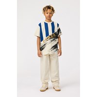 Råhvid t-shirt i økologisk bomuld med korte ærmer og ribkant i halsen. T-shirten har en løs pasform og et sejt print med inspiration fra fodboldverdenen.
