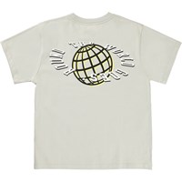 Rodney er off white t-shirt med print af en jordklode og teksten 'The world goes round'. T-shirten har en oversized og løs pasform.