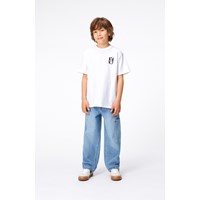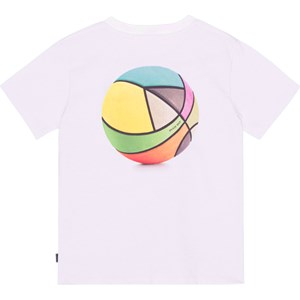 Hvid t-shirt med placeret front- og rygprint i økologisk bomuld. Printet på ryggen viser en farvestrålende basketball med et budskab. Det lille frontprint sender dig et cool peacetegn. For fred er nemlig cool. T-shirten har en rund halsudskæring, ribkant i halsen og en løs pasform.