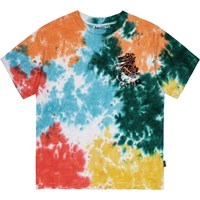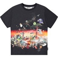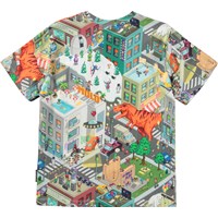 Multifarvet t-shirt i økologisk bomuld med korte ærmer, rund halsudskæring, og ribkant i halsen. T-shirten har en oversized pasform og et alloverprint. Printet er et nostalgisk og humoristisk print, inspireret af tidlig 80’er og 90’er arkade computergrafik. Det udtrykker en pixelversion af vores egen verden med masser af sjove detaljer og figurer.