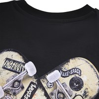 Sort t-shirt i blødt økologisk bomuld med korte ærmer og ribkant i halsen. T-shirten har en oversize pasform med print to knækkede skateboards der former et hjerte og teksten ´Freedom´.