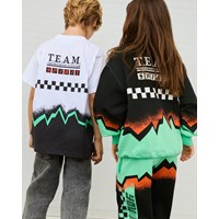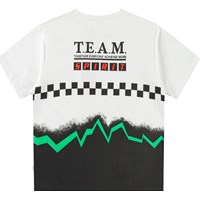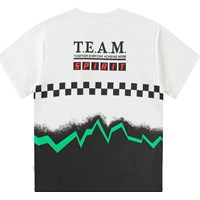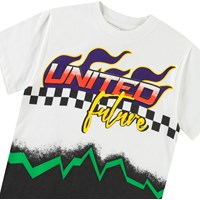 Hvid t-shirt i økologisk bomuld med korte ærmer og ribkant i halsen. T-shirten har en løs pasform og et print, der refererer til motocrossverdenen, samt teksten 'United Future'.