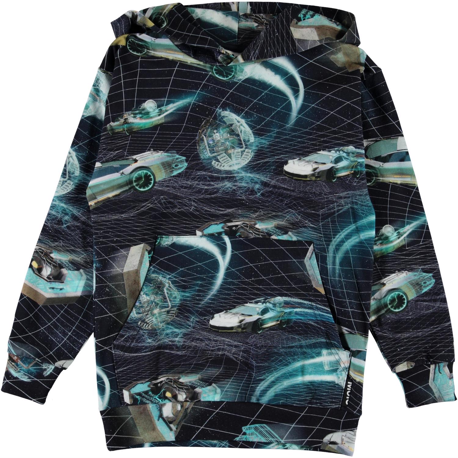 Romo er en hættetrøje med kængurolomme og all-over printet 'Time Machine'.
