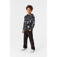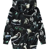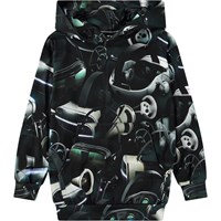 Sort hoodie i økologisk bomuld med lange ærmer, hætte, bred ribkant ved ærme og hofte, og en kængurulomme på fronten. Hoodien har en almindelig pasform og et alloverprint inspireret af virtual reality, især VR-briller, som har evnen til at transportere dig ind i en helt anden verden.
