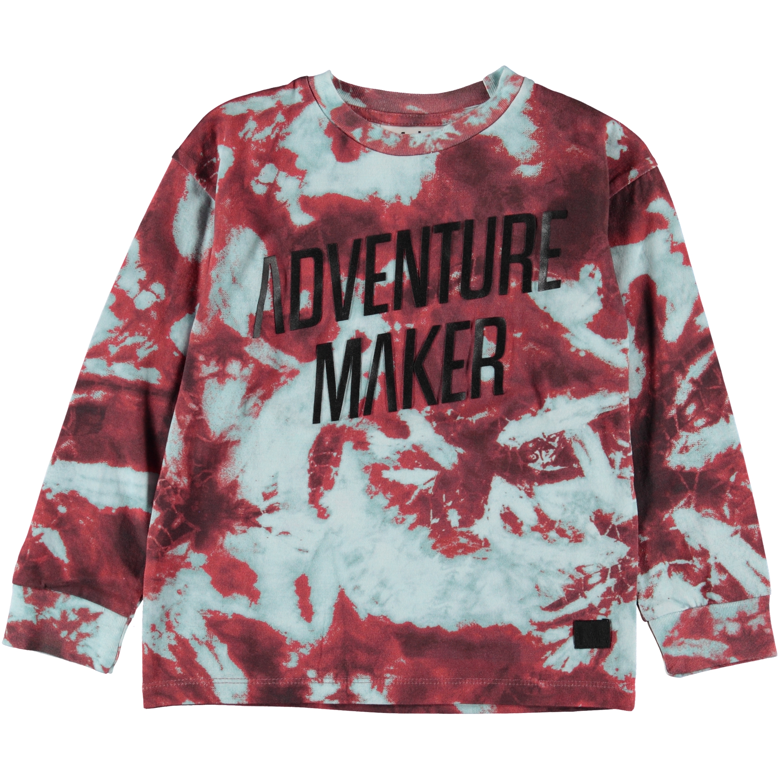 Rong er en bomulds bluse med sejt tie dye mønster og teksten 'Adventure Maker' på fronten.
