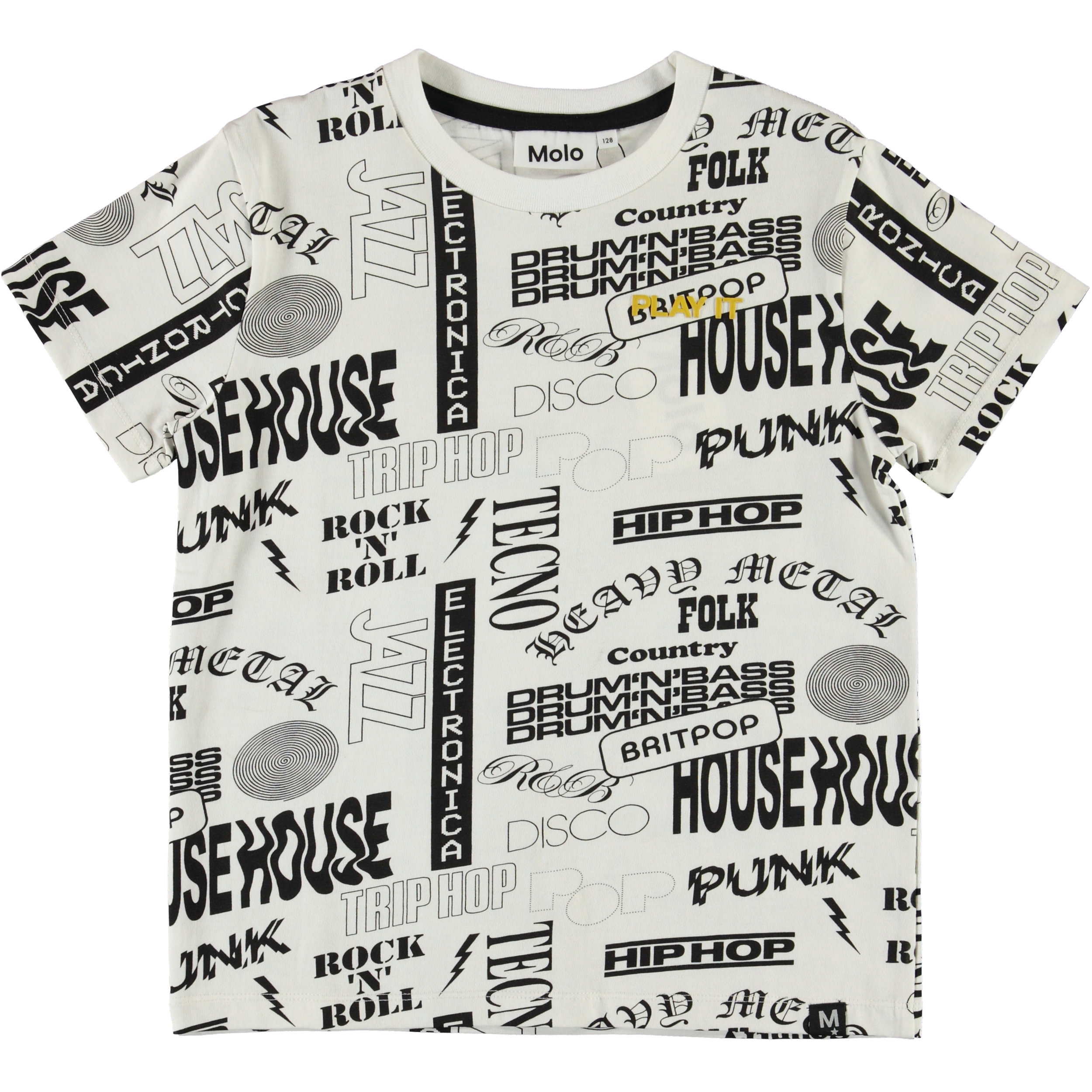 Lige meget om du er mest til hip hop, jazz eller tekno, så rock med i denne Roxo t-shirt. T-shirten er knækket hvid med all-over print af forskellige musik genre.