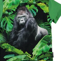 Roxo er en grøn t-shirt med print af en stor gorilla på fronten.
