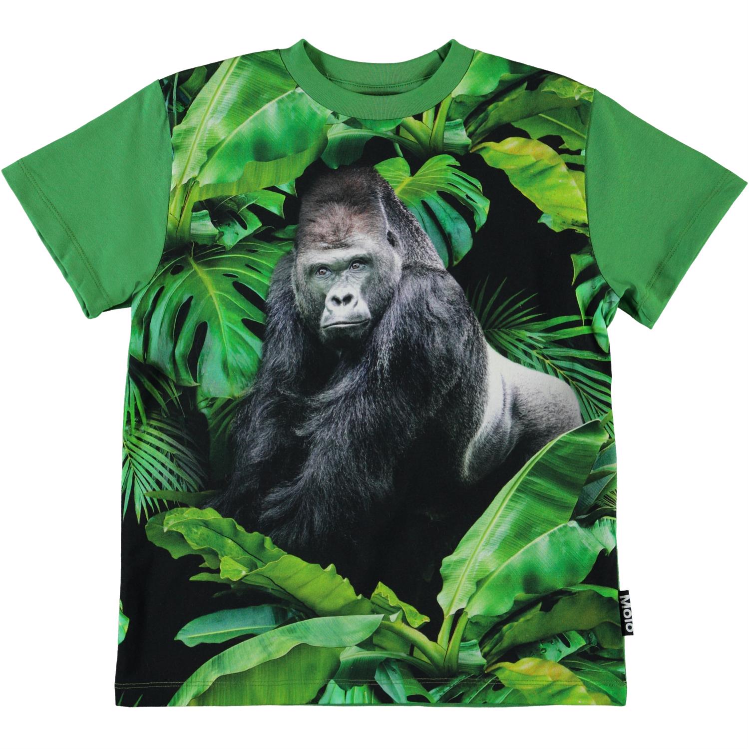 Roxo er en grøn t-shirt med print af en stor gorilla på fronten.