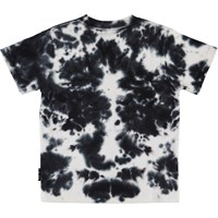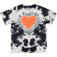 Roxo i printet "Heart Tie Dye" er en T-shirt i sort og hvid tie dye og et rødt hjerte på brystet.