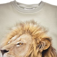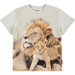 Beige t-shirt med løst fit i blødt økologisk bomuld med korte ærmer og ribkant i halsen. T-shirten har en løs pasform med et print på fronten af en smuk løve familie.