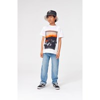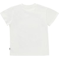 Roxo er en hvid T-shirt med billedet af en racerbil i en solnedgang på brystet.