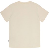 Råhvid t-shirt i økologisk bomuld med korte ærmer, rund halsudskæring og ribkant i halsen. Den har en almindelig pasform og et placeret print på fronten. Printet skildrer et scenarie fra et computerspil, nærmere bestemt et racespil, lige i det øjeblik, hvor du kører over målstregen.