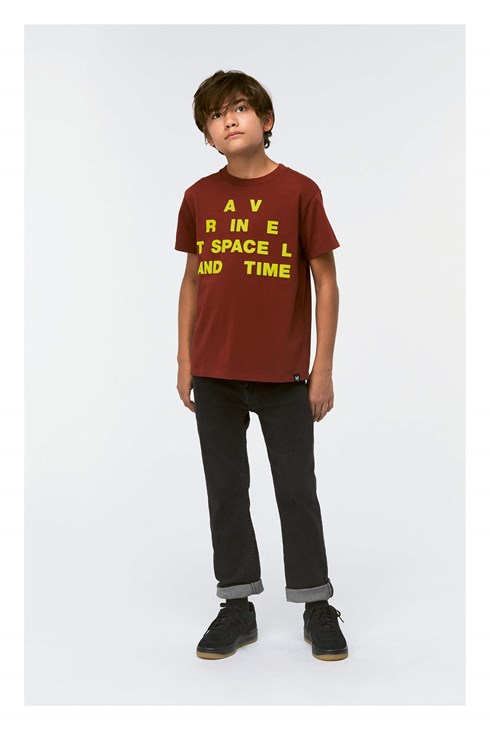 Travel in space and time' med Roxo, som er en bomulds t-shirt. Skriften på brystet er i gummi, hvilket giver en 3D effekt.