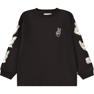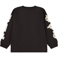 Sort langærmet bluse i økologisk bomuld med ribkanter ved halsudskæring og ærmer. Blusen har en løs pasform med print af søde og sjove hånd tegn.