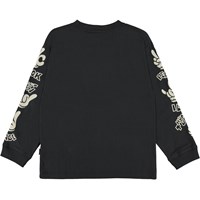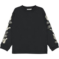 Rube er en sort langærmet bluse med print af forskellige håndtegn ned langs ærmerne.