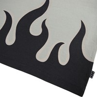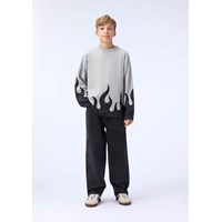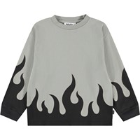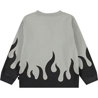 Grå langærmet bluse i økologisk bomuld med ribkant i hals og ærmer. Blusen har en løs pasform med et sort flammeprint i bunden.
