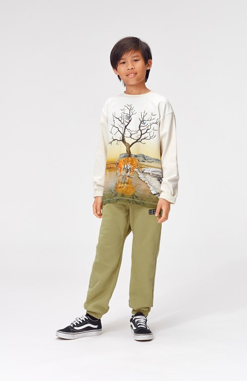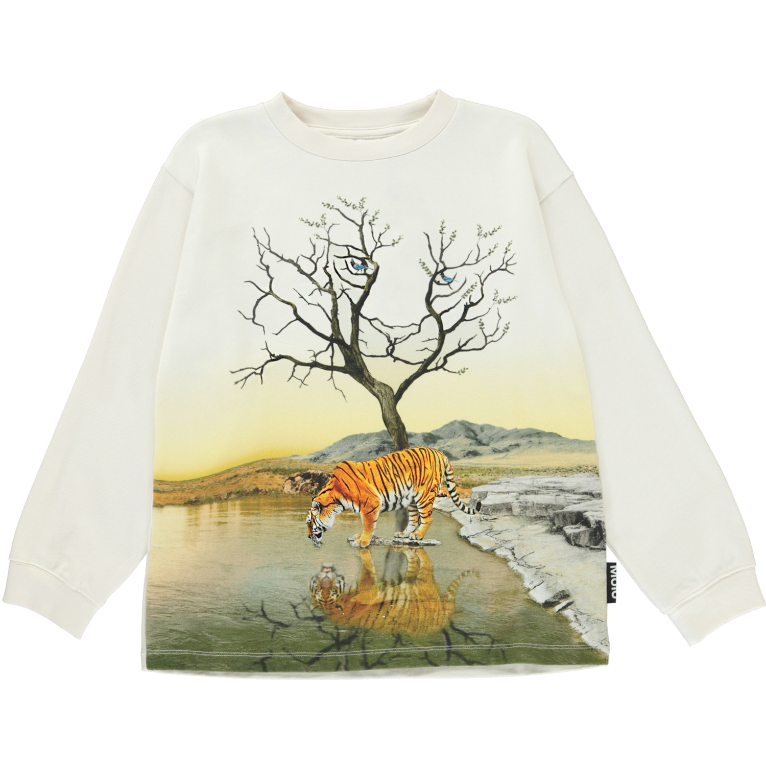På sweatshirten Rube i printet "Imagine Tiger", ses tigeren nede ved søbredden, for at få slukket sin tørst. Imens, aner man en tiger ånd i træet, hvor den holder øje og passer på tigeren ved søen.