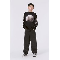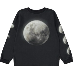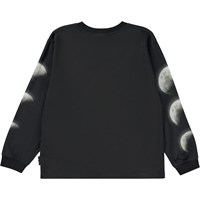 Sort langærmet t-shirt med placement måneprint. Frontprintet viser en stor fuldmåde, mens man ned af begge ærmer kan se månen i sine forskellige faser, som både tiltagende og aftagende. Denne langærmede t-shirt er fremstillet i 100% bomuld, har en rund halsudskæring med ribkant, ribkant ved ærmer, samt et loose fit. Tag evt. en kortærmet t-shirt udover, for et cool lag-på-lag look.