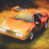 Sort, langærmet bluse i økologisk bomuld med ribkanter ved halsudskæring og ærmer. Blusen har en løs pasform med frontprint en rød sportsvogn i en mørk skov.