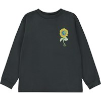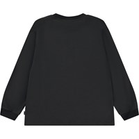 Sort langærmet t-shirt med retro placement front print. På printet se et rumskib, der har forvildet sig med på dinosaurnes planet. Eller, måske er det slet ikke en anden planet, måske er det Jorden, men i en helt anden tidsalder, end vores? Hvad tror du? Denne langærmede t-shirt er fremstillet i 100% bomuld, har en rund halsudskæring med ribkant, ribkant ved ærmer, samt et loose fit.