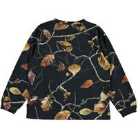 Ruben er en langærmet bluse med all-over print af gyldne blade. Blusen har en lomme på venstre bryst.