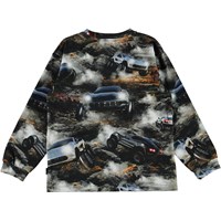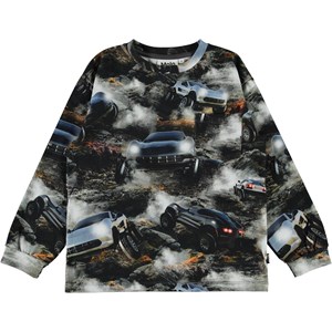 Ruben er en langærmet bluse med all-over print af store terræn kørende biler. Blusen har en lomme på venstre bryst.