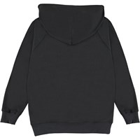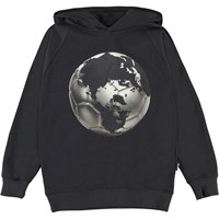 Russel er en sort hættetrøje med print af en fodbold på fronten.