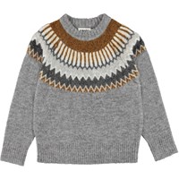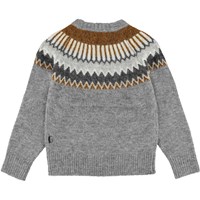 Bae er en grå strikbluse med mønster for oven og med inspiration fra de traditionsrige islandske sweatre.