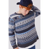 Barri er en strikbluse i grå og blå med inspiration fra de traditionsrige islandske sweatre.