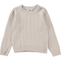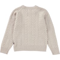 Råhvid striktrøje i kabelstrik. Denne striktrøje er fremstillet i en blød uld blanding, som gør den perfekt til de koldere dage. Den har rund halsudskæring med ribstrik, raglansnit, lange ærmer, ribstrik ved hofte og ærmer, samt et regulært fit.