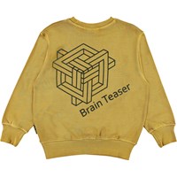 Mattis er en gylden sweatshirt med print på både front og ryg med en 'Brain teaser'.