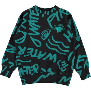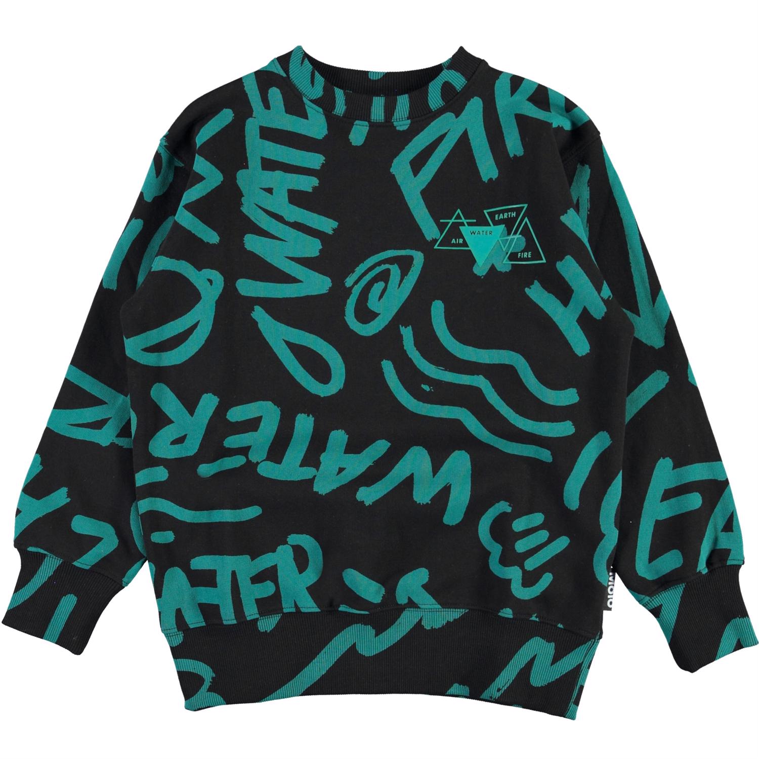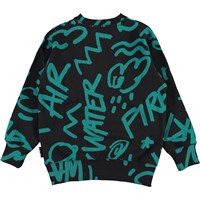 Mattis er en sort sweatshirt med grønt tekst og symbol print af de fire elementer. Kombiner sweatshirten med matchende sweatpants.