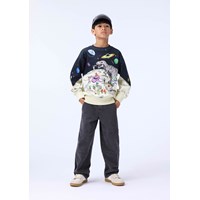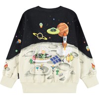 Farvestrålende sweatshirt i blødt økologisk bomuld med ribkanter ved hals, ærmer og i bunden af blusen. Sweatshirten har en almindelig pasform og et pixeleret computerinspireret print af månen.