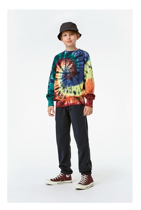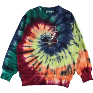 Mattis er en farverig tie-dye sweatshirt, hvor farverne danner en spiral. Sweatshirten har også print af fortid, nutid og fremtid på fronten.